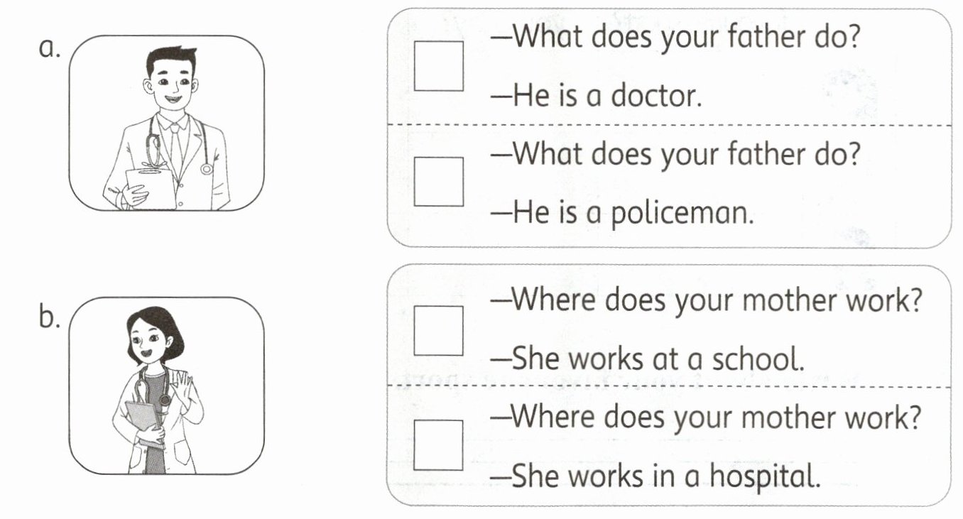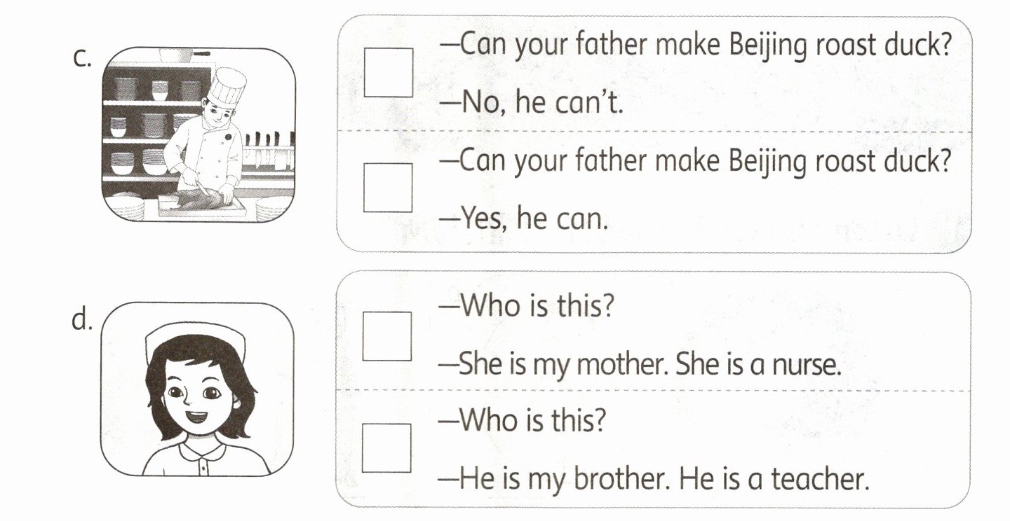 2 Read and tick. 看图,勾出与图片相符的对话。