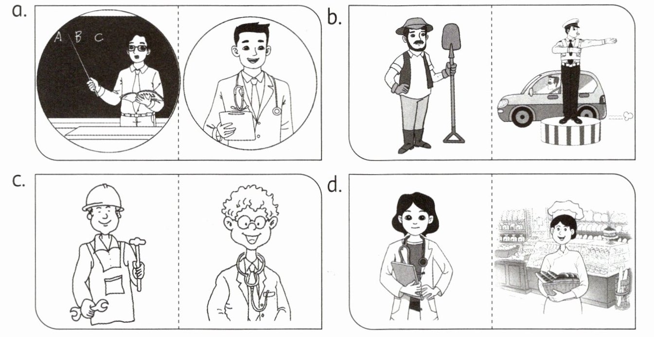 2. 图1—第2句 Farmers 图2—第3句 Workers 图3—第4句 Teachers 图4—第1句 Doctors