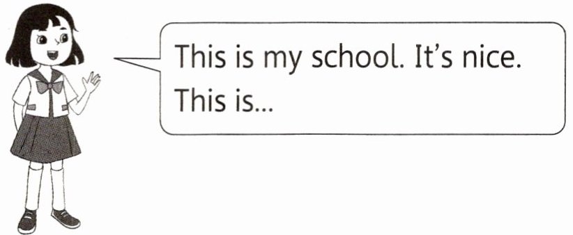 This is my school. It’s nice. This is the playground where we play sports. This is the library where we read books. This is the classroom where we have lessons. I like my school very much.