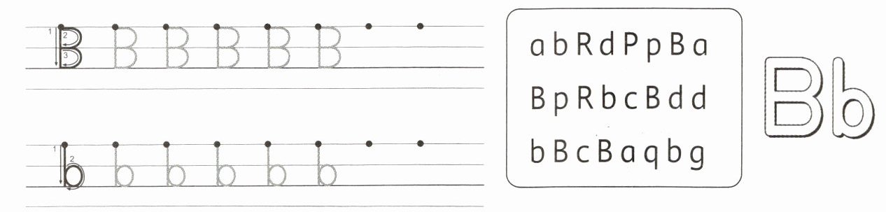 Circle: Circle all the "B" and "b" in the box (abRdPpBa BpRbcBdd bBcBaqbg).