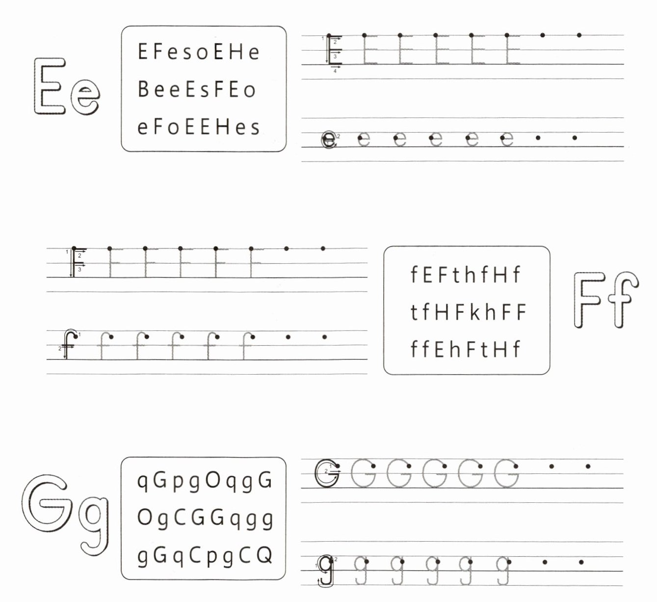 Circle: Circle all the "E" and "e" in the box (EFesoEHe BeeEsFEo eFoEEHes).