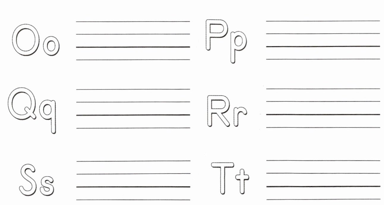 2 Read, colour and write. 读下列字母,将其涂成你喜欢的颜色。然后将大小写形式规范地写在四线三格中。