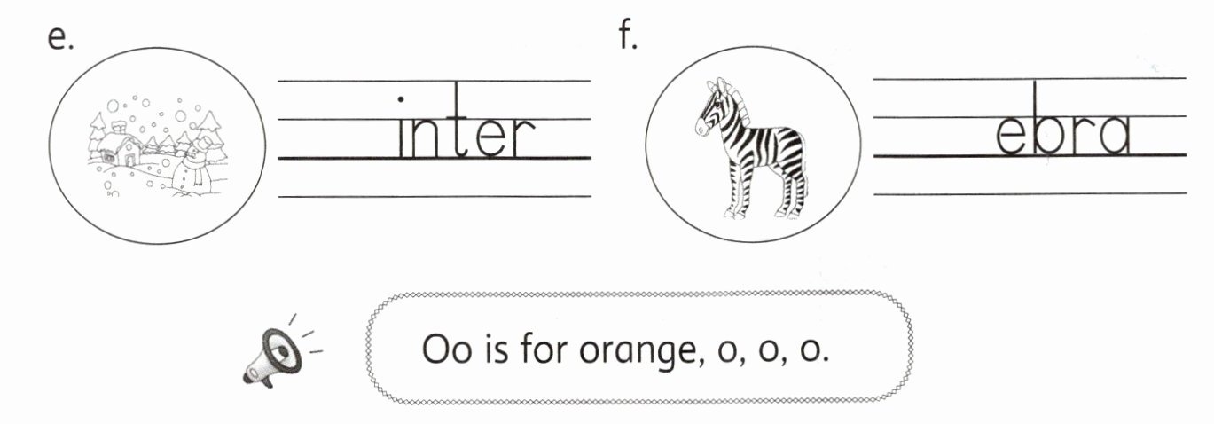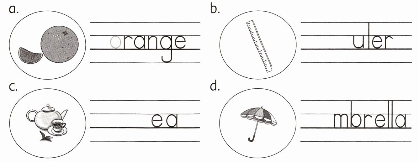 4 Look, write and say. 看图,选择方框中合适的字母组成单词,写一写并说一说。