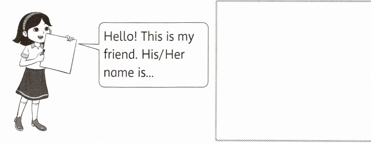 Drawing (description as I can't draw here): Draw a simple figure of a friend.