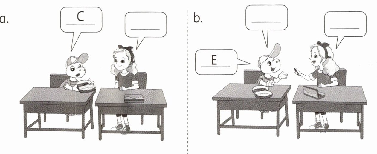 3 Look, read and circle. 看一看,读一读,圈出与对话相符的图。
