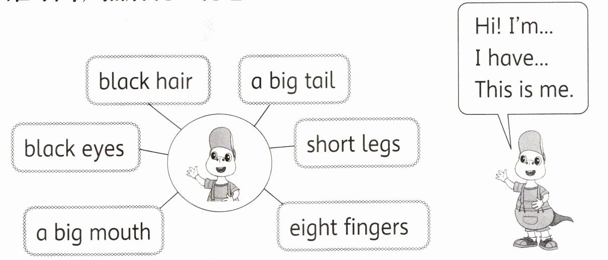 Hi! I'm Li Ming. I have black hair, black eyes, a small mouth, long legs, ten fingers and a small nose. This is me. (答案不唯一,可根据自身实际情况填写思维导图内容并介绍)
