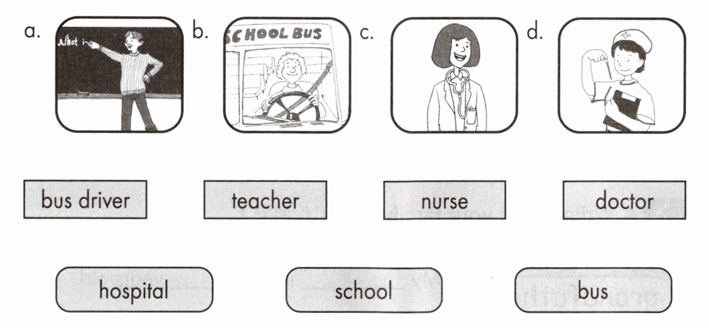 a.-teacher-school b.-bus driver-bus c.-doctor-hospital d.-nurse-hospital