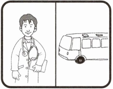 a. doctor, bus b. worker, bike c. teacher, car d. nurse