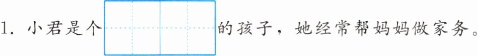 1. 小君是个$\begin{array}{|c|c|} \hline & \\ \hline & \\ \hline \end{array}\begin{array}{|c|c|} \hline & \\ \hline & \\ \hline dǒng shì$的孩子,她经常帮妈妈做家务。