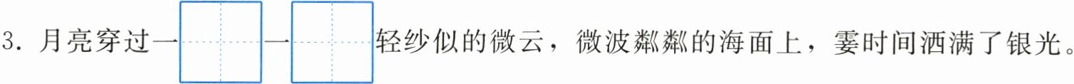 3. 月亮穿过一缕一缕____轻纱似的微云,微波粼粼的海面上,霎时间洒满了银光。