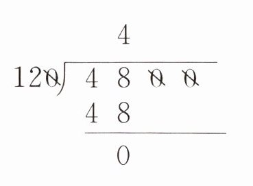 2. $\begin{array}{r}4 \\ 120\enclose{longdiv}{4800} \\ 48 \\ \hline 0\end{array} $
