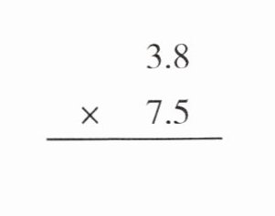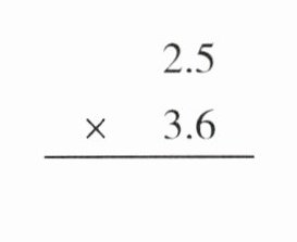$\begin{array}{r} 2.5\\ ×3.6\\ \hline \end{array}\\ \hline $ $\begin{array}{r} 3.8\\ ×7.5\\ \hline \end{array}\\ \hline $ $\begin{array}{r} 2.4\\ ×4.5\\ \hline \end{array}\\ \hline $