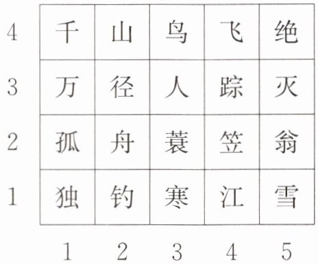 (2)数对$(5,1)$表示的是汉字( )的位置,数对$(3,2)$表示的是汉字( )的位置,数对$(2,3)$表示的是汉字( )的位置。