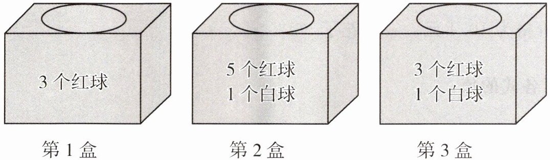 2. 分别从下面 3 个不透明的盒子中任意摸出 1 个球。下列叙述错误的是( )。