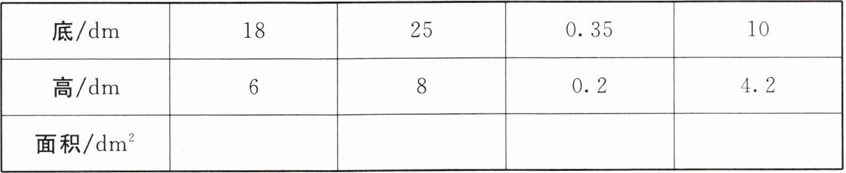 下表中给出的是平行四边形的底和高,算出每个平行四边形的面积,填在空格里。