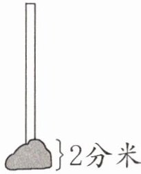 4. 科研小组想测量一条河某处的水深。他们用一根 1 米长的竹竿竖直插到河里,竹竿露出水面的部分长 23 厘米,拔出后淤泥部分如右图。这条河该处的水深是(