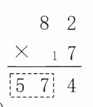 \begin{array}{r}82 \\× \ \ 17 \\\hline\boxed{57}4 \\\end{array}\\ $