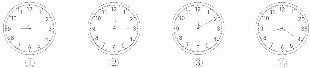 四、下面钟面上的时针和分针构成了大小不同的角,把它们按从小到大的顺序排列。(填序号)