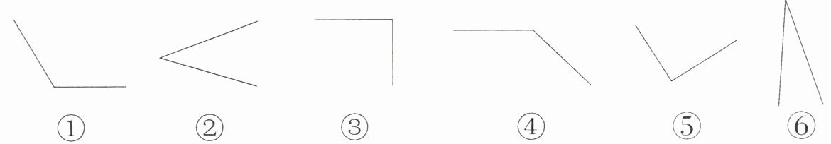 钝角:从某一点出发,向左上方画一条较平的线段,再从同一点向右上方画一条较陡的线段,两条线段组成较大的角为钝角。