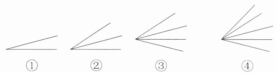 数一数下面的图形中各有几条射线、几个角,填在下面的表格里。
