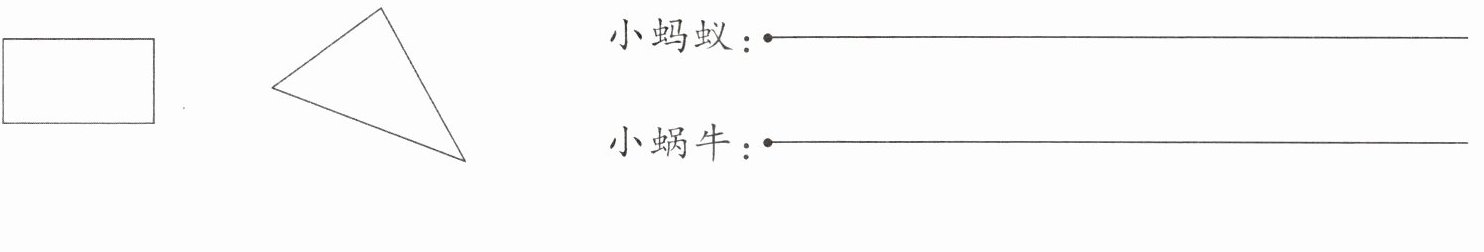 小蚂蚁沿着长方形的边爬了一圈,小蜗牛沿着三角形的边爬了一圈。请你用圆规比较它们爬行路线的长度,谁爬的距离长?