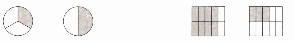 $\frac{1}{3}$ < $\frac{1}{2}$ $\frac{8}{10}$ > $\frac{3}{10}$