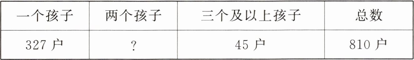 三、某小区调查了居民家庭孩子的数量,结果如下表所示,该小区有两个孩子的家庭有多少户?