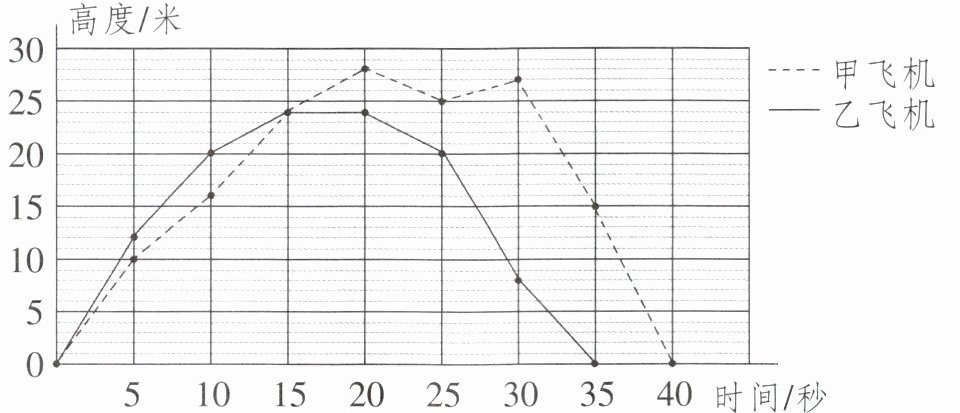 (2)甲飞机在第15秒至20秒高度从24米上升到28米,处于上升状态;乙飞机在第15秒至20秒高度保持24米不变,处于平稳飞行状态。
