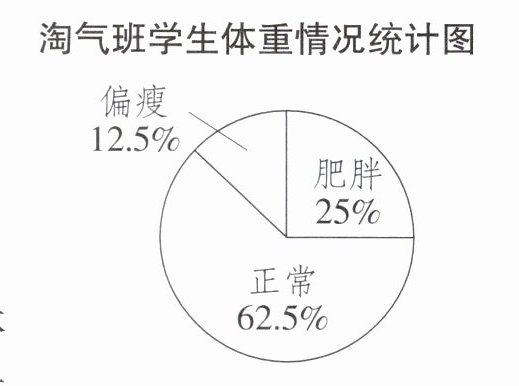从图中可知,体重正常人数为$20$人,体重偏瘦人数为$5$人,再结合(1)中求得的肥胖总人数$12$人。