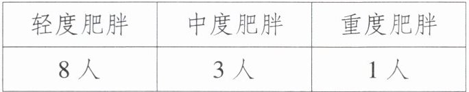 肥胖总人数为轻度肥胖人数、中度肥胖人数与重度肥胖人数之和,即$8 + 3+1=12$人。