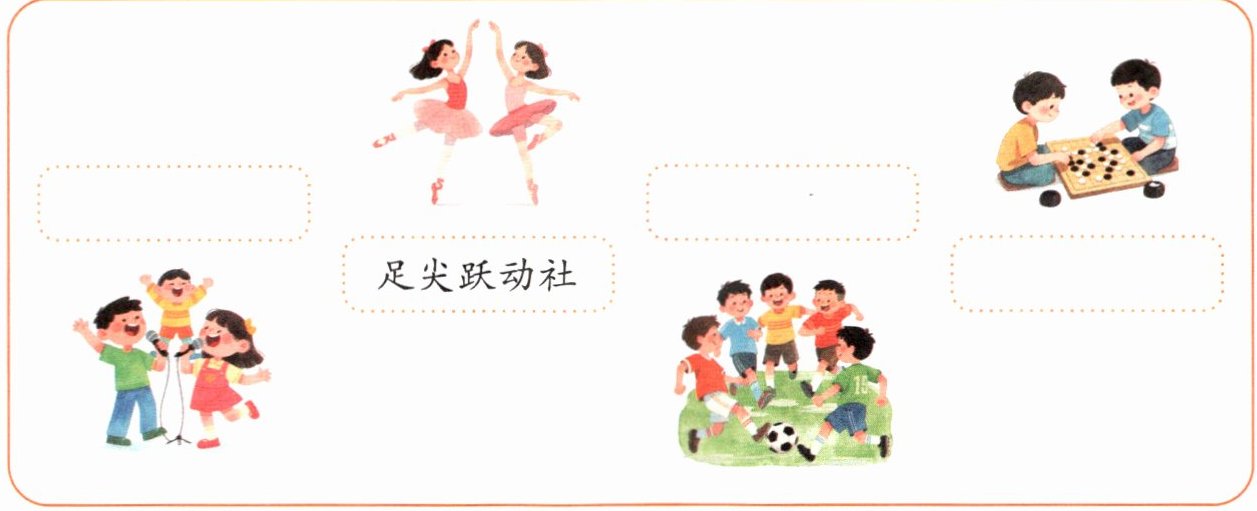 三、奇奇想给下列社团各取一个有个性的名字,以此来吸引新同学,请你帮帮他。(目标:108)