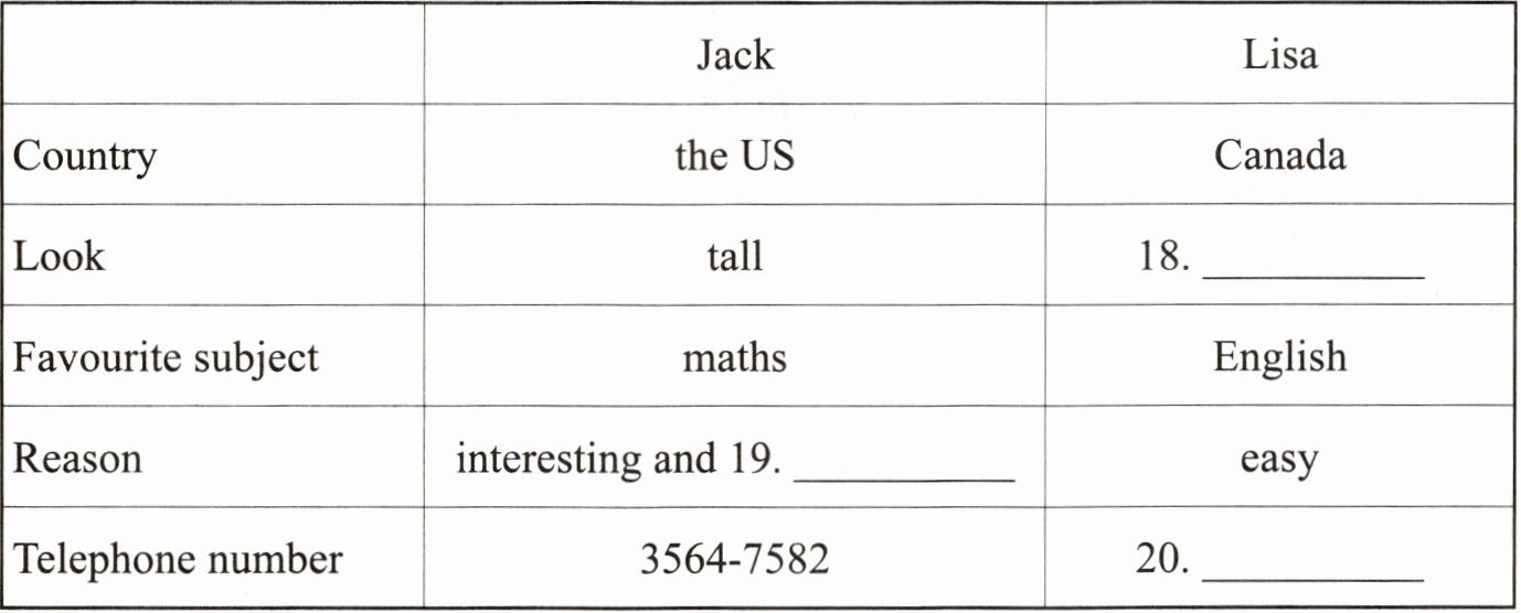 四、听短文,根据所听内容填写表格,每空仅填一词。短文听两遍。(每小题 1.5 分,共 4.5 分)