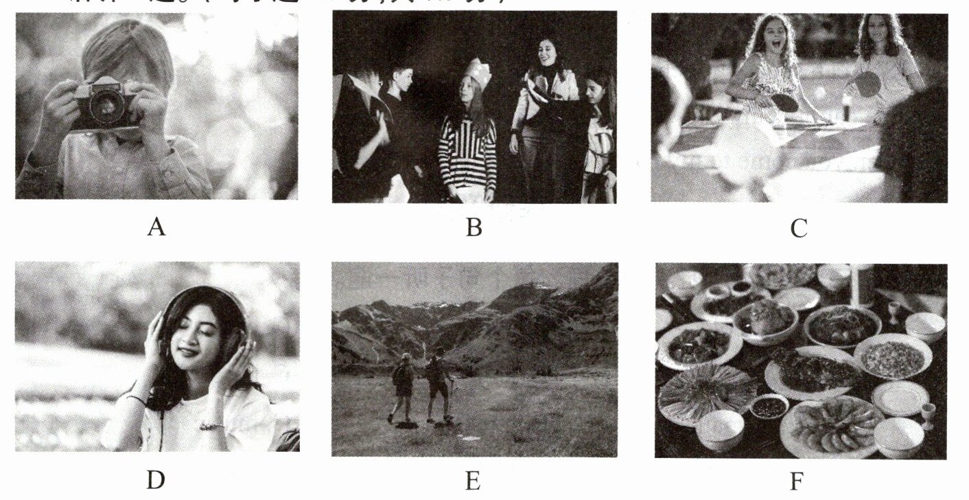 一、听短对话,根据所听内容选择合适的图片,其中有一张图片是多余的。每段对话听一遍。(每小题 1.5 分,共 7.5 分)