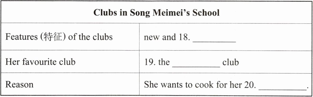 四、听短文,根据所听内容填写表格,每空仅填一词。短文听两遍。(每小题 1.5 分,共 4.5 分)