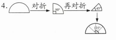 4. 想一想,怎样用半圆形的纸片折出135°的角?试着在下面画出你的方法。
