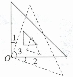 5. 三角尺沿点$O$顺时针旋转后,$∠1和∠2$是不是相等的?