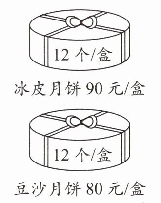 4. 中秋节是我国的传统节日。在这一天,人们有赏月、吃月饼、看花灯等习俗。国盛超市为迎中秋节,进了64盒冰皮月饼和36盒豆沙月饼。
