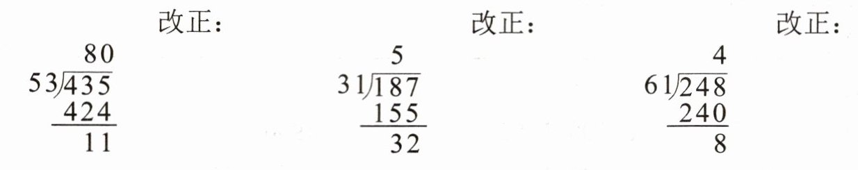 1. $\begin{array}{r} 8\\ 53\enclose{longdiv} {435}\\ 424\\ \hline 11\end{array}$