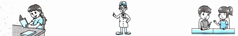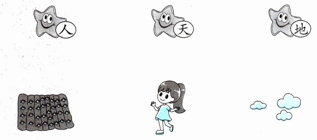 二、在图片下的句子中找出“你、我、他”,画“√”。
