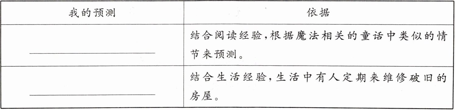 老屋可能被施了魔法 有人定期来维修老屋 点拨:预测要符合课文行文逻辑,联系上下文进行合理想象即可。