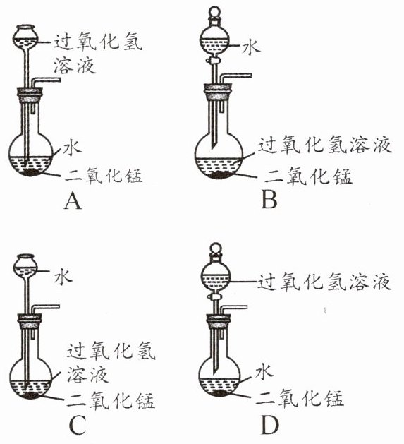 3. 15% 的过氧化氢溶液在二氧化锰催化作用下会剧烈反应产生氧气。实验室欲利用 15% 的过氧化氢溶液制取氧气,下列装置中,仪器选择和试剂放置最合理的是( )
