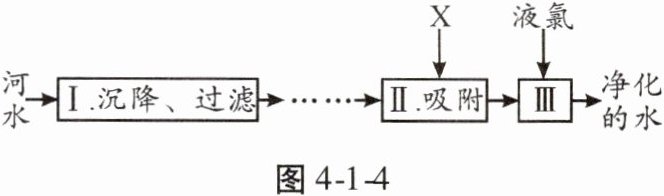 D 【解析】过滤能除去不溶性杂质,故步骤Ⅰ可除去不溶性杂质,A正确;活性炭具有吸附性,能除去水中的色素和异味,B正确;液氯能杀菌消毒,故步骤Ⅲ可杀菌消毒,C正确;纯水是不含有杂质的水,经过这几步后净化的水中含有可溶性杂质,不是纯净物,D错误。