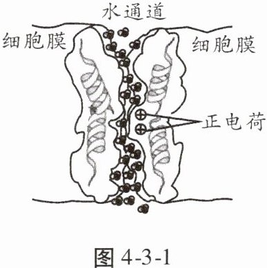 11. 科学家发现,细胞膜中存在着某种只允许水分子出入的通道——水通道。图4-3-1是诺贝尔化学奖获得者彼得·阿格雷公布的世界上第一张水通道蛋白的示意图。
