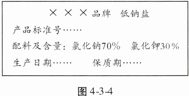典例2 钠摄入过量或钾摄入不足都可能会导致高血压。日常生活中选择食用低钠盐能实现减钠补钾。图4-3-4为某品牌低钠盐的标签,请根据标签回答问题。