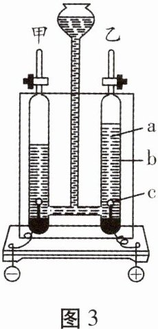 4. 人类的日常生活和工农业生产离不开水。为探究水的组成及变化,某小组同学设计如图3所示装置进行电解水实验,先在电解器玻璃管里加满水(含少量氢氧化钠溶液),再接通直流电源。已知水中加入的氢氧化钠只起增强导电性的作用,本身不参与反应。