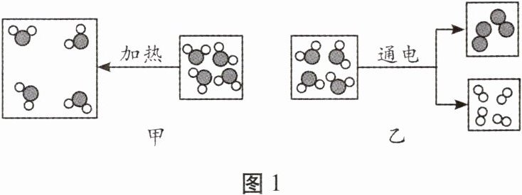 2. 图1中甲、乙分别是水发生变化的微观示意图,请回答下列问题。