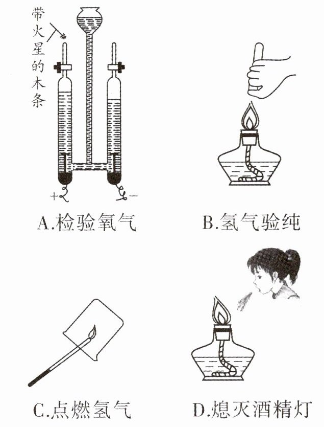 1. 某同学进行水的组成及变化的探究,其中操作错误的是 ( )