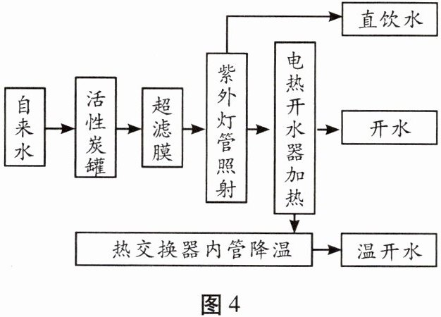 【查阅资料】直饮水机的工作流程图如图 4 所示。