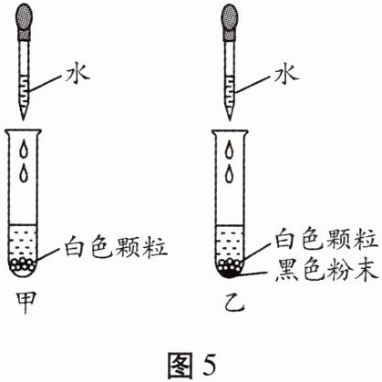 (3)如图5所示,分别取等质量的白色颗粒和等体积的水加入甲、乙两支试管中,再向乙试管中加入黑色粉末。观察到甲试管中仅有少量气泡,乙试管中有大量气泡。