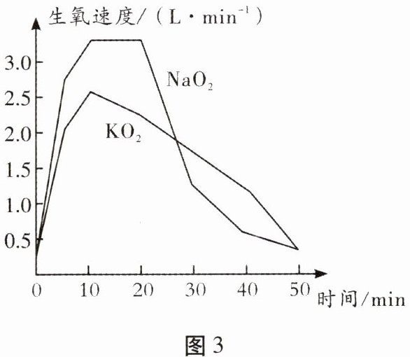 500g超氧化钾$(KO_2)$和500g超氧化钠$(NaO_2)$的生氧性能如图3所示。